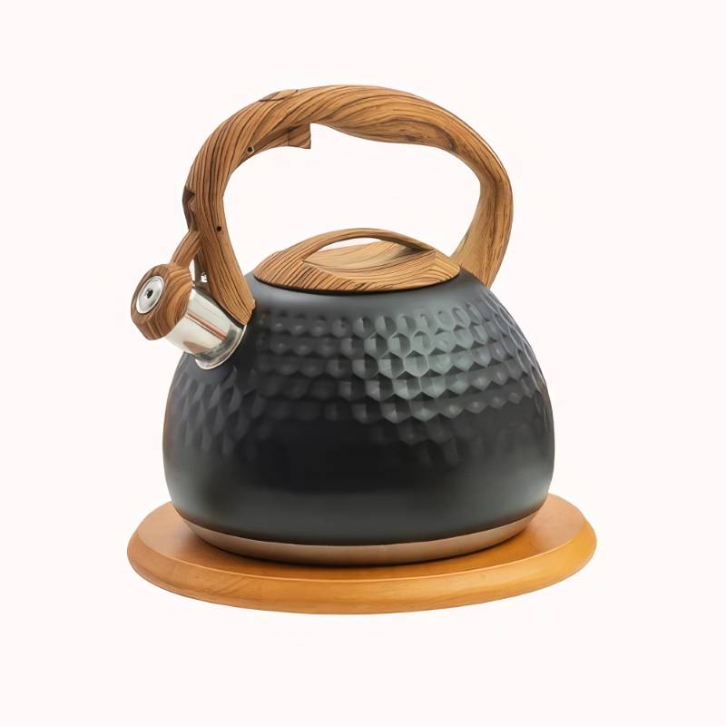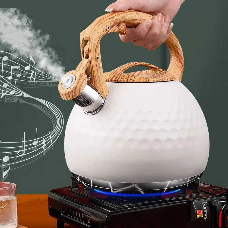 Avec son design moderne et son charme intemporel, cette bouilloire qui siffle apporte une touche raffinée à vos moments de détente. Sa surface martelée noire ou blanche, associée à une anse imitation bois, en fait bien plus qu’un simple accessoire de cuisine : c’est un véritable objet déco qui attire le regard tout en restant pratique. Sa large capacité de 3 litres permet de préparer du thé, des infusions ou du café pour toute la famille en un seul service.